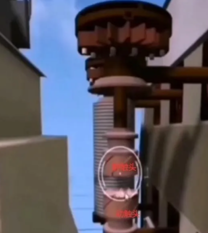 觸頭動作時工作在真空狀態下,下觸頭是動觸頭,上觸頭是靜觸頭