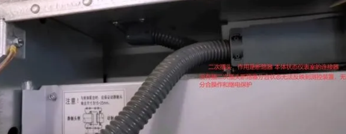 7,上圖為斷路器二次控制航空插頭,它的作用是斷路器本體狀態與繼電器,儀表室的連接器件,連接樞紐。航空插頭如果不插上的話斷路器分合閘狀態是無法反映到測控裝置的,測控裝置指示燈就不亮,也無法使用操控面板和集控室的DCS系統對斷路器進行分合閘操作。