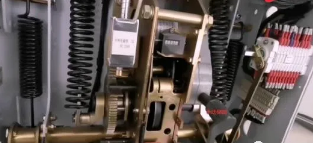 3,我們拿儲能搖拔順時針手動儲能,一直搖到儲能開關發出,啪嗒的聲響就表示手動儲能到位,儲能指示在已儲能狀態