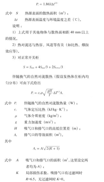 (2)熱對流是物體表面與相接觸的流體間有溫差時出現的傳熱現象。柜體表面、氣箱表面或熱源表面的自然對流散熱可用下式估算