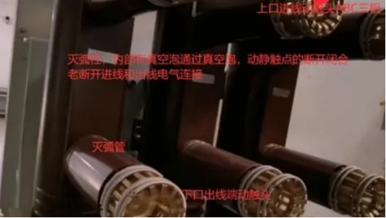 滅弧柱內(nèi)部有真空泡,經(jīng)過真空泡完結(jié)動靜觸點(diǎn)分合,來分合進(jìn)線和出線得電氣銜接